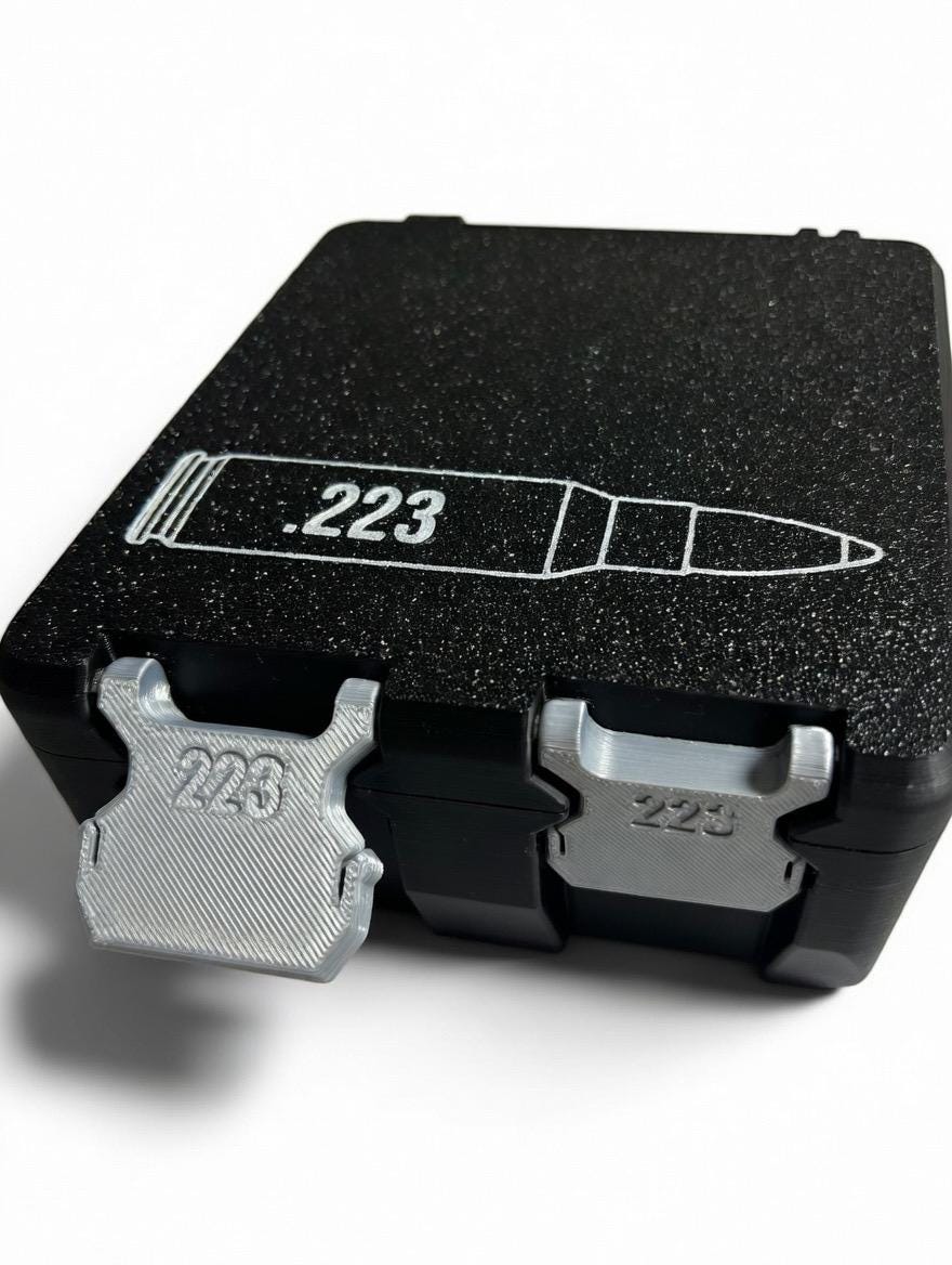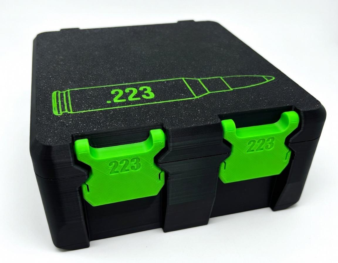 Clean, compact, and built to keep your ammo organized and protected. This 3D-printed ammo storage container features a secure flip-top lid, snug cartridge fit, and a low-profile design that’s perfect for the range bag, safe, or bench.