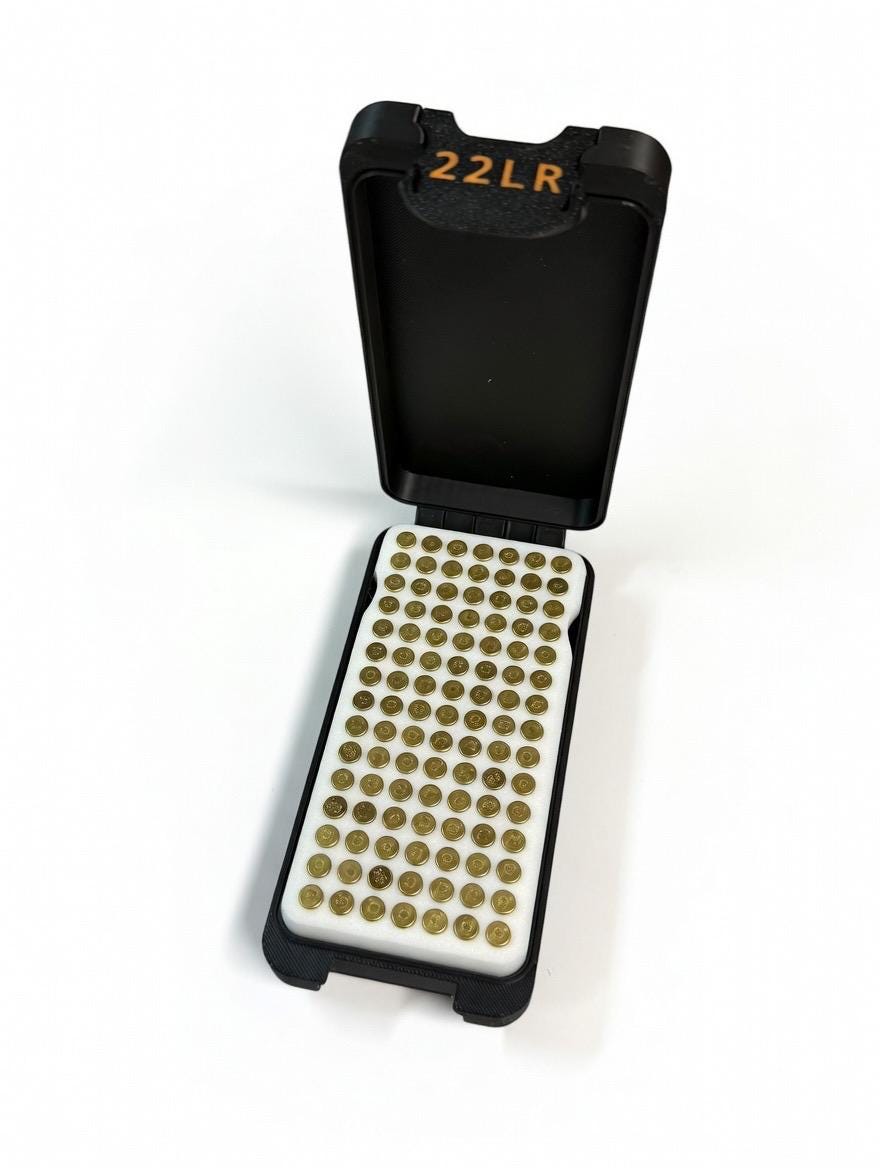 Clean, compact, and built to keep your ammo organized and protected. This 3D-printed ammo storage container features a secure flip-top lid, snug cartridge fit, and a low-profile design that’s perfect for the range bag, safe, or bench.