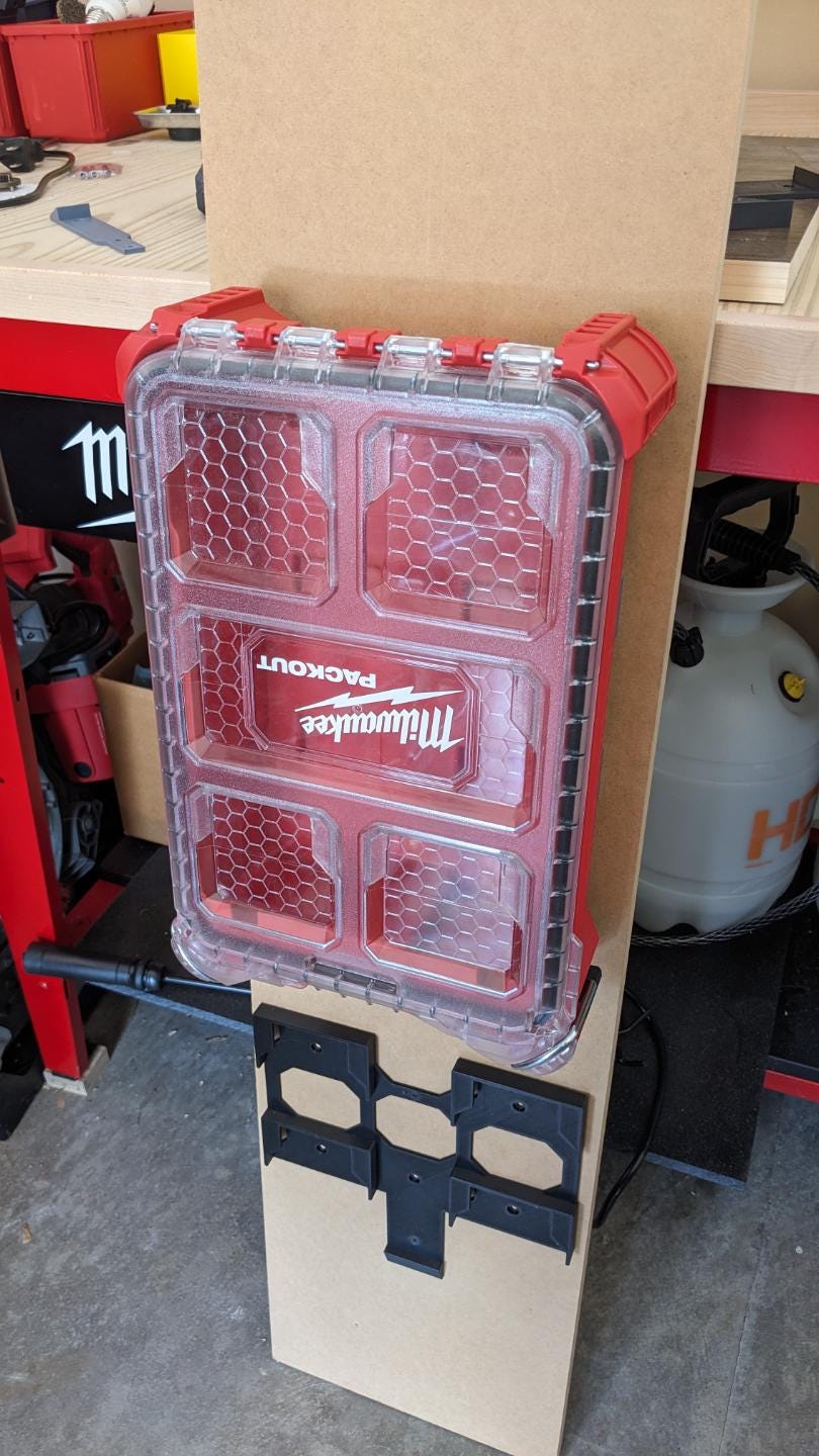 Custom 3D printed cleat holder designed to mount your Milwaukee Tool Packout organizer securely to the wall. Clean, low-profile design that keeps your setup organized and off the floor.