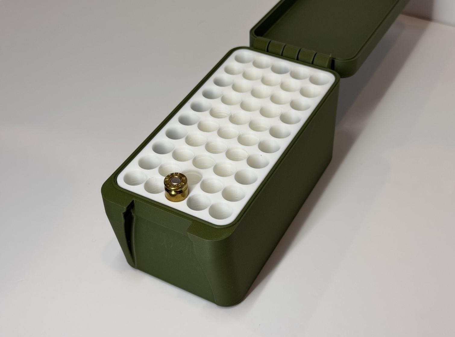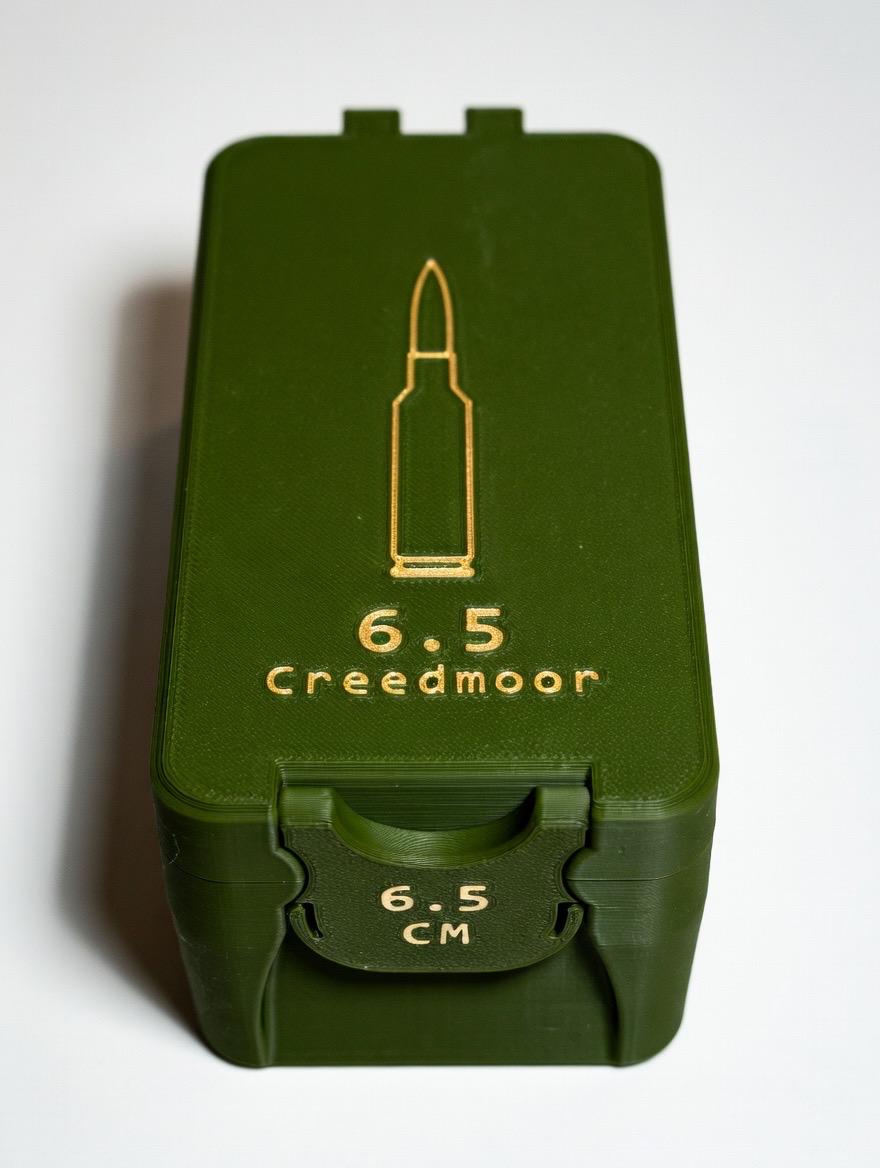This custom 3D-printed 50-round ammo storage box is perfect for shooters, reloaders, and range days. Designed specifically for 6.5 Creedmoor, it keeps your rounds secure, upright, and easy to access.