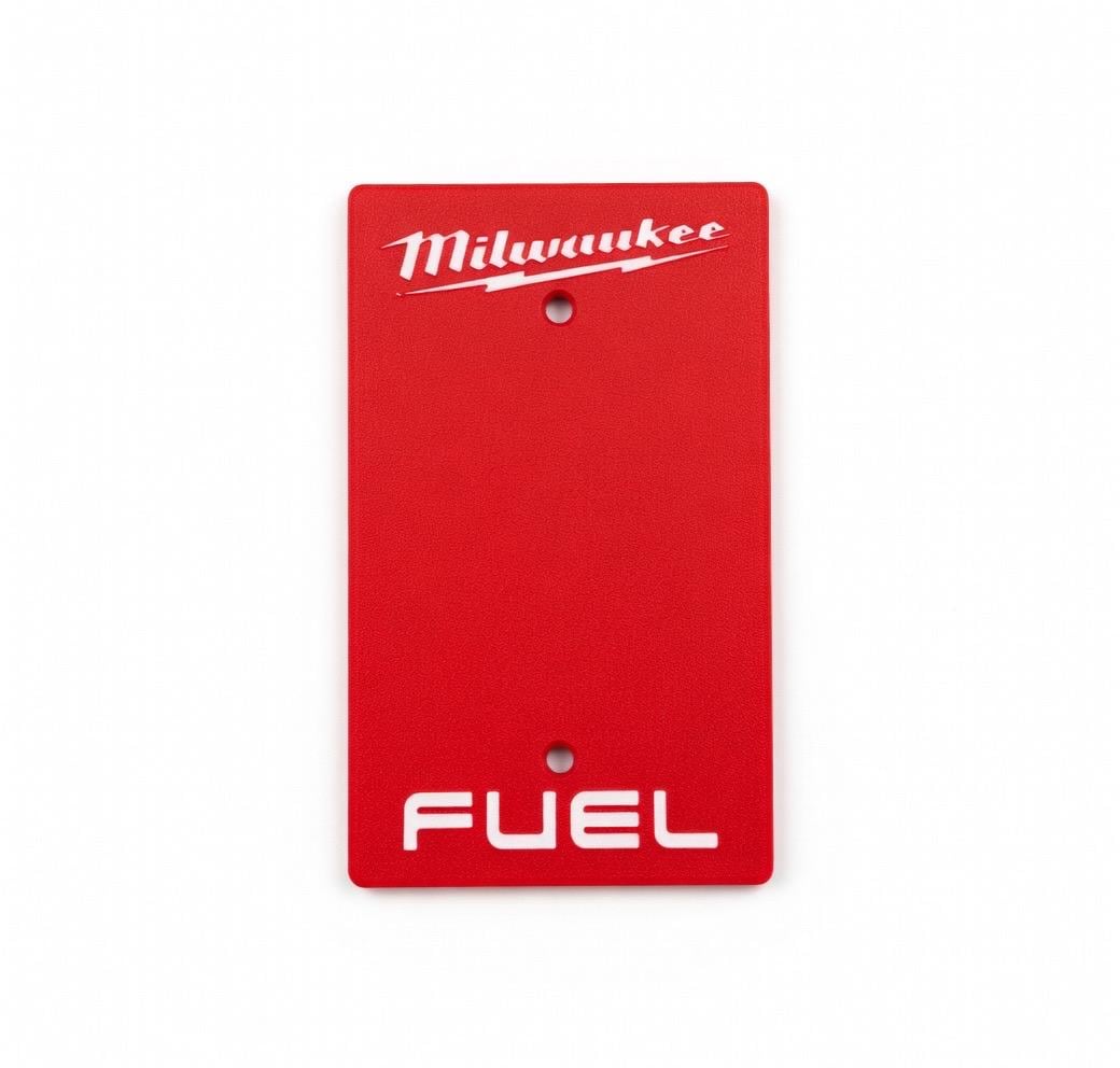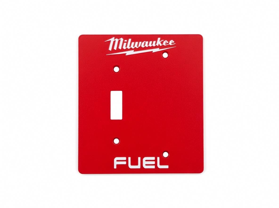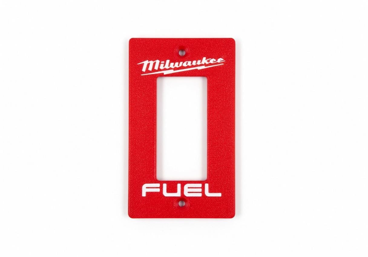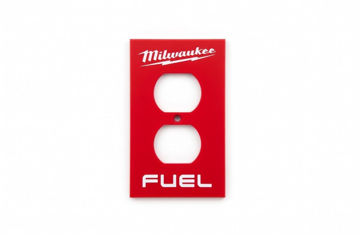 Add some serious Milwaukee FUEL energy to your garage, workshop, man cave, or tool wall! These bold red faceplates feature the iconic Milwaukee script logo with lightning bolt and the classic FUEL branding in crisp white lettering.