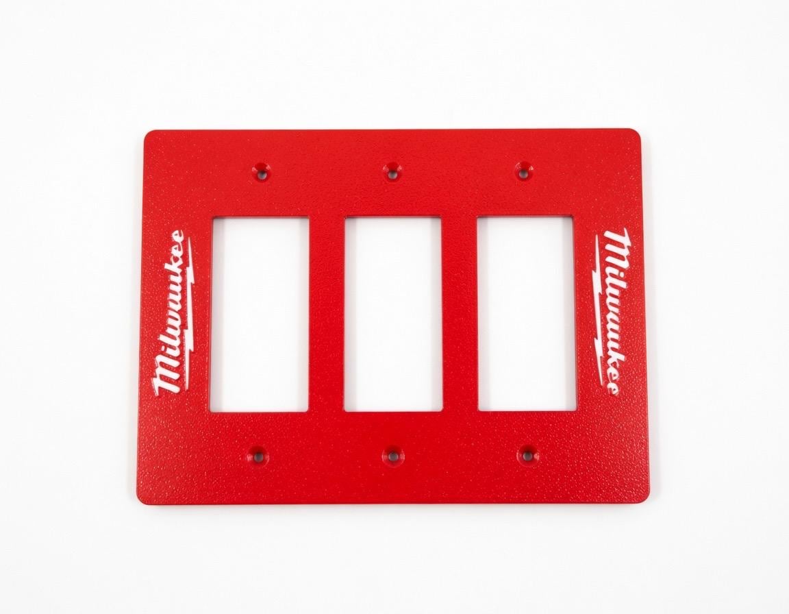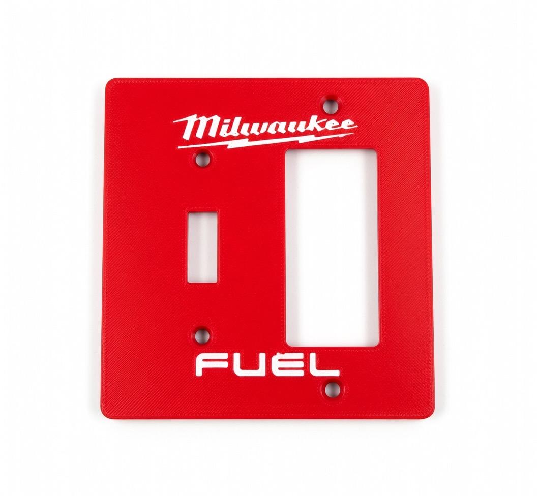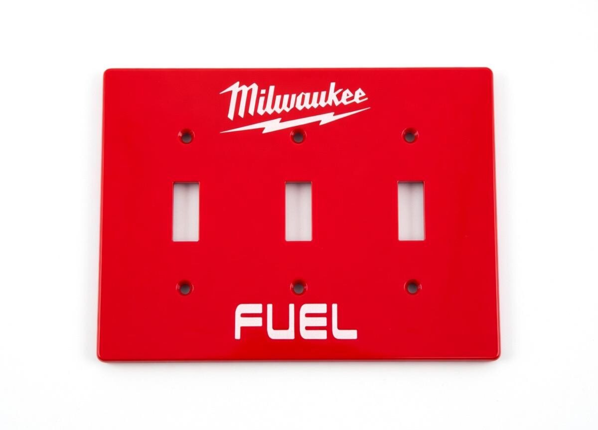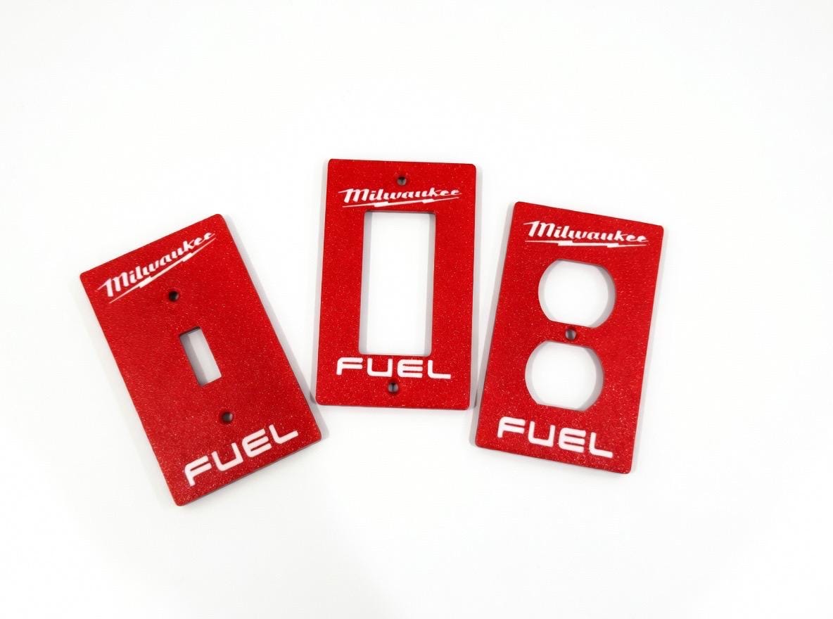Add some serious Milwaukee FUEL energy to your garage, workshop, man cave, or tool wall! These bold red faceplates feature the iconic Milwaukee script logo with lightning bolt and the classic FUEL branding in crisp white lettering.